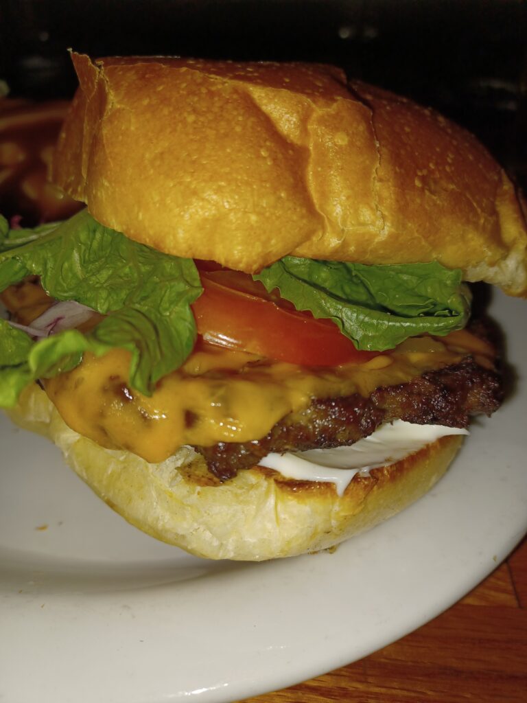 This featured a hand-formed patty with a crispy outer layer. It was not seasoned. There was decent quality cheese. Vegetables were fresh. The slightly crusty bun was excellent.