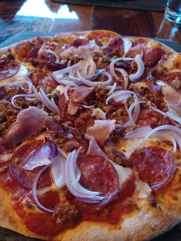 The crust was nicely crisp. I would have liked a little more char on it. The sauce was not particularly flavourful, but it wasn’t off-putting at all. The other topping were all of reasonably high quality.