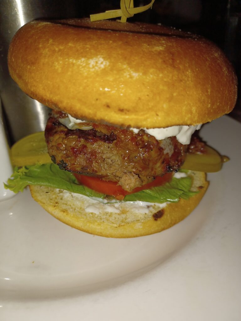 This burger had a very thick patty that would fall in the 6-8oz range. It was juicy and deliciously seasoned with a nice crust. It was topped with aged cheddar. The bacon jam was very good and the aioli was perfect. Veggies were all fresh. The bun was good, but maybe the weakest element as it fell apart a bit when the juices came out of the patty. Overall, this was a very good burger.