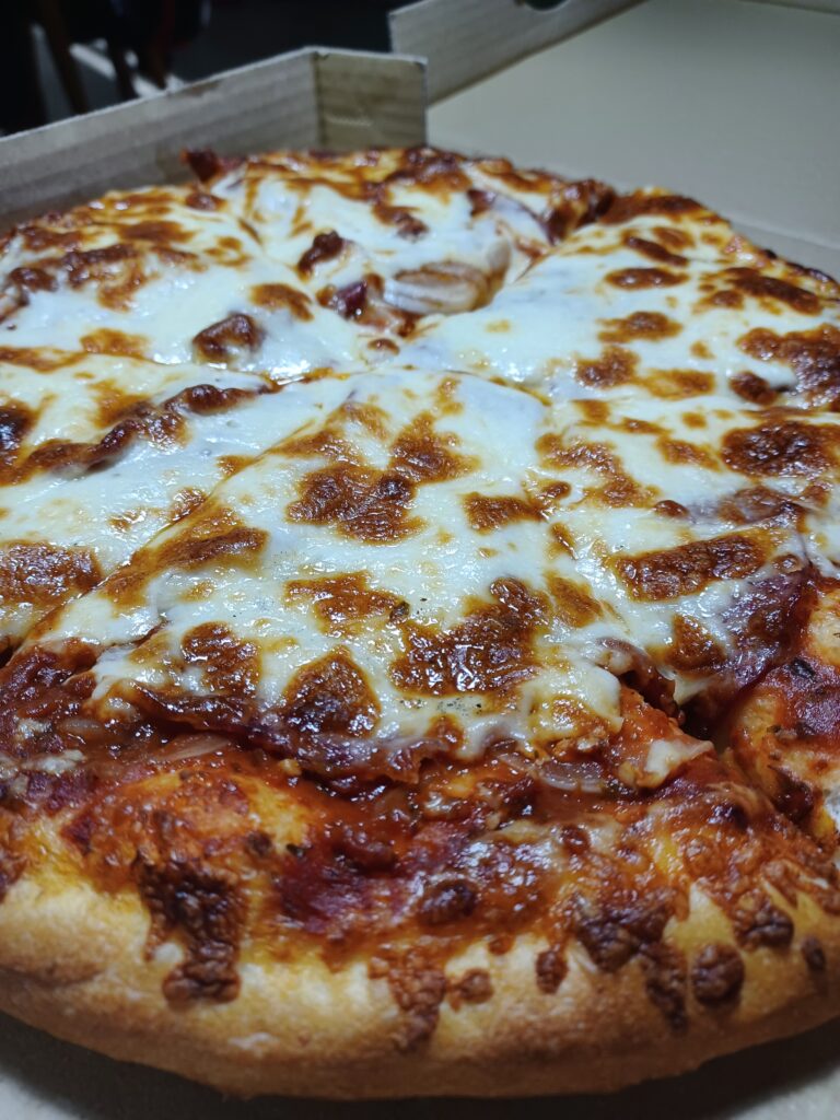 This was pretty much the definition of Ottawa-style pizza. It had the typical, thick crust, but with a slightly less eggy base. Despite being thick, it was fully cooked. The sauce was even sweeter than I’d expected, which I actually appreciated. The toppings (pepperoni and onion) were included under the reasonably generous amount of cheese.