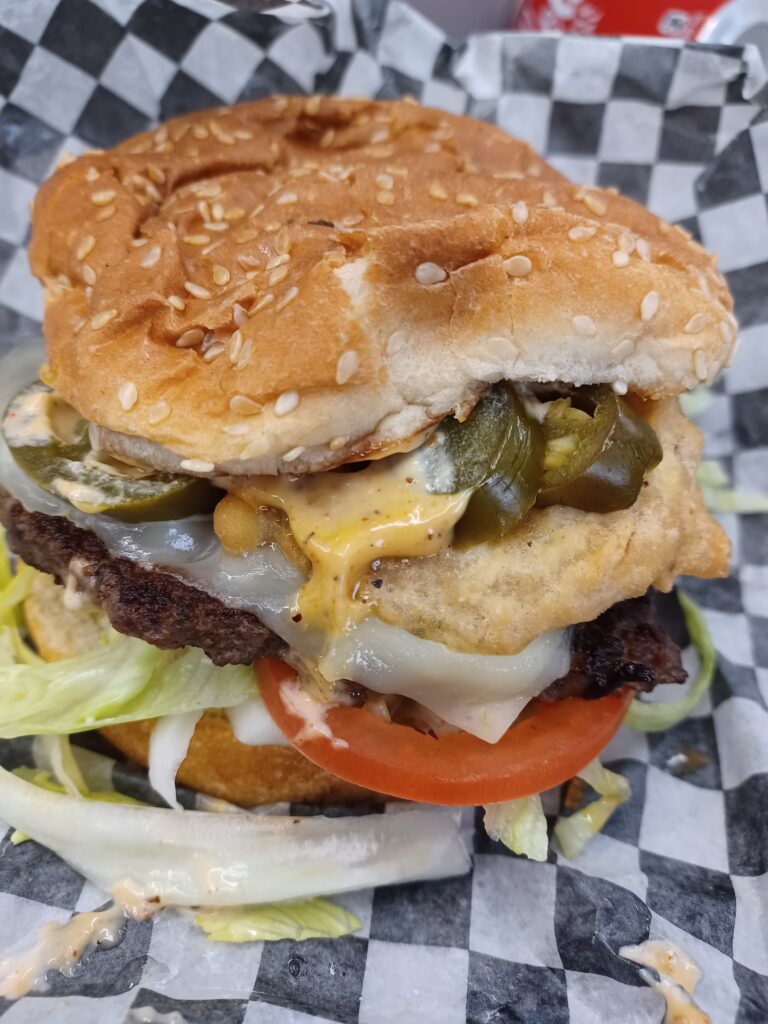 This burger had a 4oz patty cooked well-done. It was just a little dry. It didn’t seem to be seasoned much, if at all. I liked the amount of veggies on there (one thin slice of tomato is perfect). I clumsily added the mayo myself, so please ignore the excess. The cheese and bacon were nice additions, but didn’t stand out. Toasting the sesame bun helped the burger a lot.