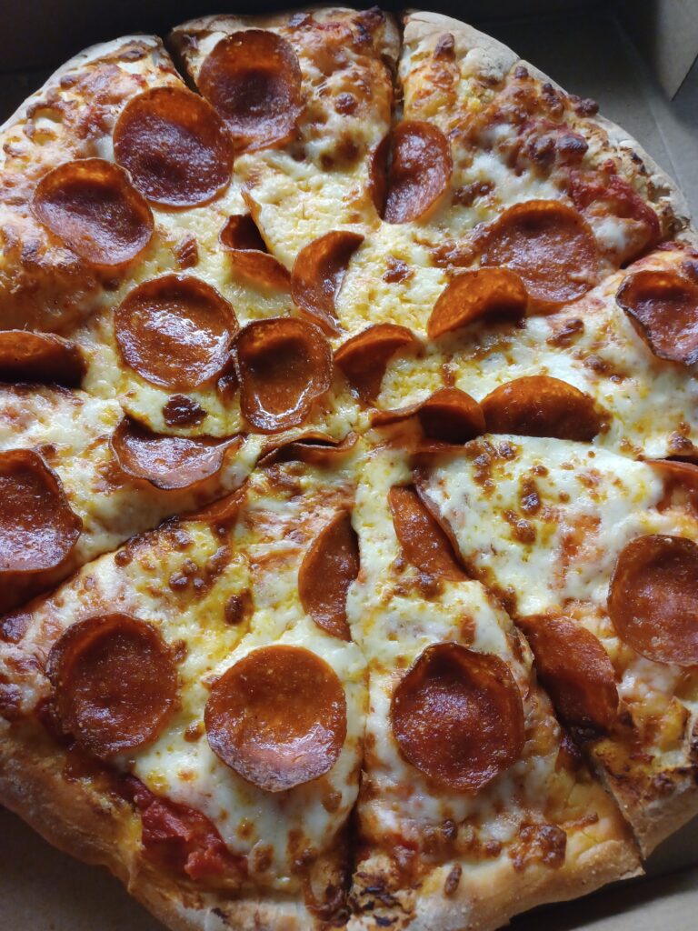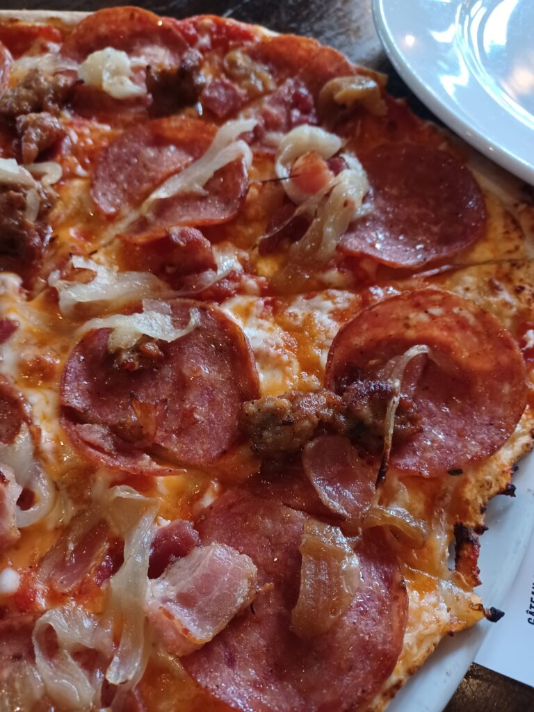 The crust was probably the weakest part of the pizza. It was of medium thickness, but had little flavour and a cardboard texture. The sauce was light with a hint of sweetness. There was a very nice amount of cheese and I actually really enjoyed the pepperoni.